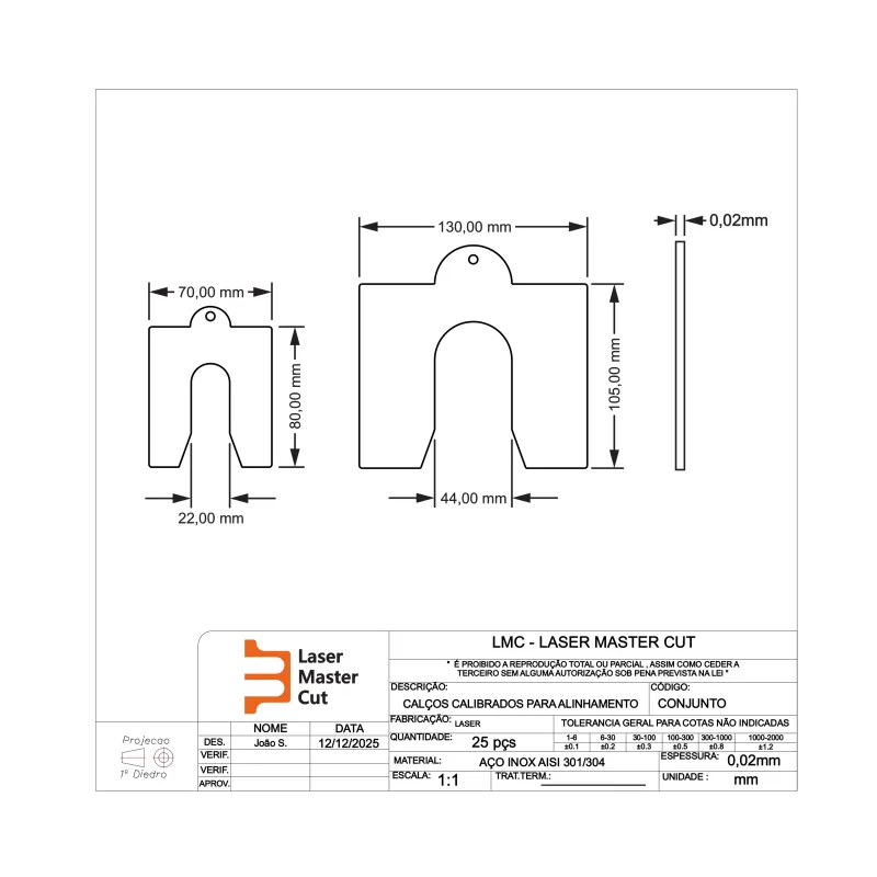 Conte com a LMC - Laser Master Cut para suas necessidades de calços calibrados!